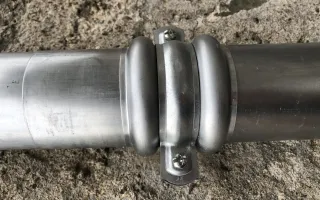 - Installation des tuyaux de descente, réalisation d'une écharpe soudées, fixation avec colliers et bagues de serrage doubles